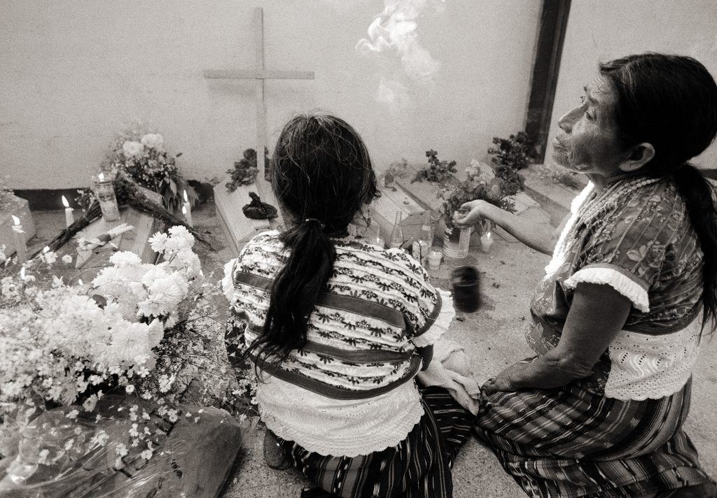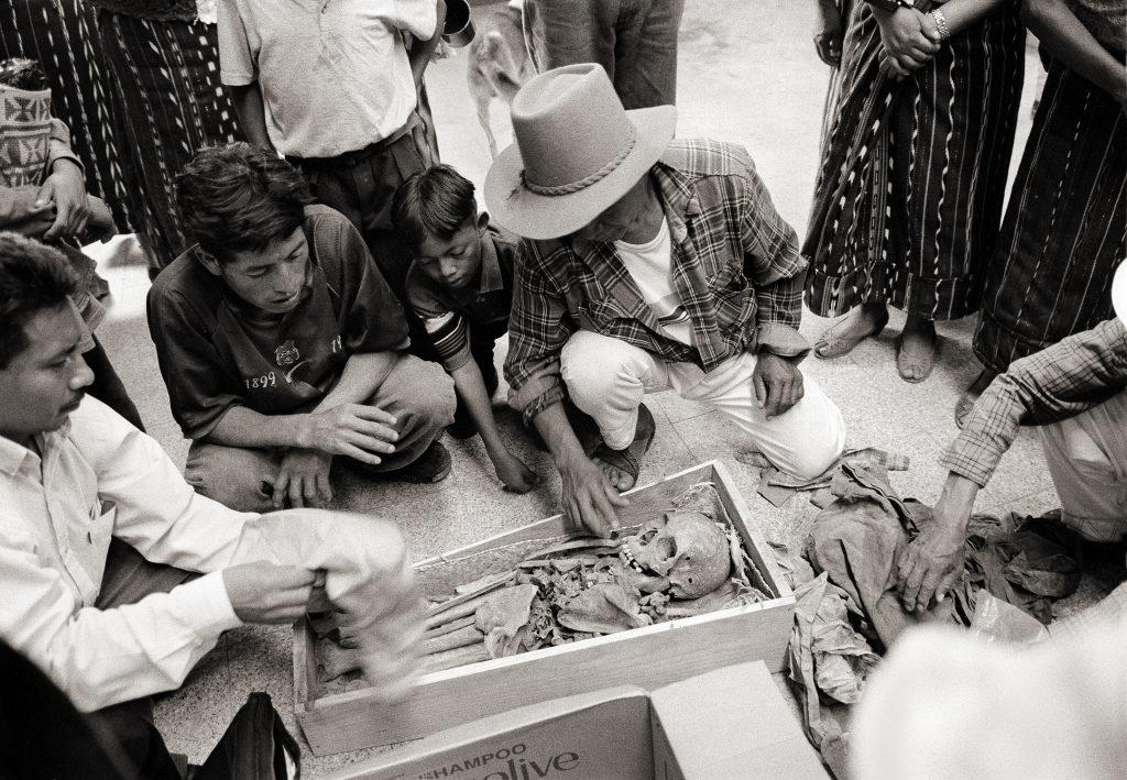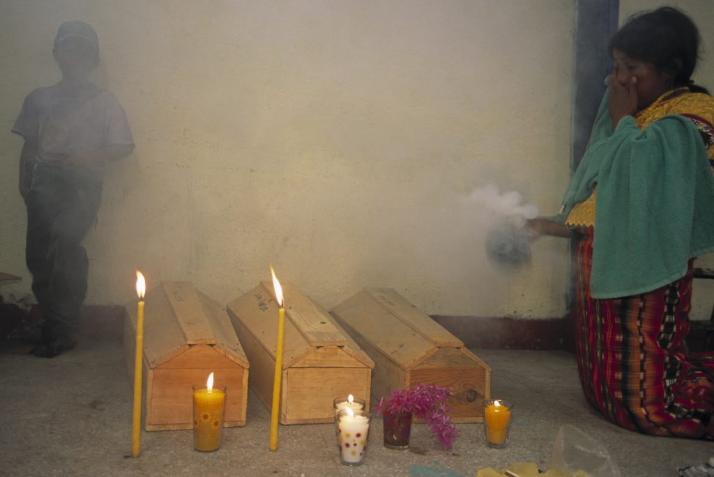Maya ruins, Tikal.María Andrea Blanca (81), Xejujup, San Andrés Sajcabajá. She lost her brother, her husband and his entire family. They were murdered by the military in 1982.Rosario Matzar (65), San Pablo. Rosario lost her husband in 1982 and was left a widow with six children.Maria Carmen Chiquito Cun (55), Xejuyup, San José Poaquil. On February 24th 1984, Maria’s husband was killed by soldiers. Her grandfather was beaten up and later died; her brother was killed by shots to the head. The soldiers robbed the family’s savings, set fire to their house and crops. Maria Carmen fled with her seven children.Gate, San Marcos.From a mass grave with 37 victims in El Zapote, Baja Verapaz.Identifying bones from a mass grave in The House of the Dead, Guatemalan Forensic Anthropology Foundation Centre.Trousers and shreds of clothing from a mass grave.Vicenta Blanca (59), Xejujup, San Andrés Sajcabajá. Her husband was killed on February 3rd 1981 together with three others at the barracks which the military had established on the property of the Catholic Church. One month later her father-in-law, mother-in-law and the rest of the family were killed by the military.Paula Diaz Puy (78), Pachey las Lomas, San Martin Jilotepeque. Three of her sons were tortured and killed by soldiers on April 15th 1980.Maria Teresa Tomas Guerra (70), Pachey las Lomas, San Martin Jilotepeque. One of her brothers was killed in 1981 by the military. In 1982 her mother, father and two other brothers were killed by the guerrillas. She fled with her children. Two of her children died during their flight.Machete.From a mass grave, The House of the Dead, Guatemalan Forensic Anthropology Foundation Centre.Football boot and findings from a mass grave, The House of the Dead, Guatemalan Forensic Anthropology Foundation Centre.Eufemia Apén Tuj (49), Hacienda Maria, San José Poaquíl. In August 1982 the military and civil defence patrols killed 196 villagers. Eufemia’s husband was tortured before he was killed. The family’s house and crops were burnt down. Eufemia fled into the mountains with her three children.Lazarra Atz Capir (70), Pachey Las Lomas, San Martín Jilotepeque. In 1982 Lazarra’s husband and his family, her son, nephews and nieces were killed by the guerrillas.Woman, Huehuetenango.Street corner, Chichicastenango, Quiché.Anonymous, San Martín Jilotepeque.Josefina Simon (48), Hacienda Maria, San José Poaquil. Josefina lost her husband and child in the massacre in 1982 in Hacienda Maria where 196 inhabitants were killed.Andrea Amperez Ciprian (50), Chocoxob, San Andrés Sajcabajá. Andrea lost her father, two brothers and other family members. They were killed on December 6th 1981 by military and civil defence patrols.Andrea Amperez Ciprian (56), Chocoxob, San Andrés Sajcabajá. The military shot and killed her father and two brothers on December 6th 1981. Maria fled with her nine-year-old daughter Manuela. A six-year-old niece was also killed by gunshots.Manuela Chijal Ciprian (35), Chocoxob, San Andrés Sajcabajá. Soldiers shot and hit Manuela in the head during the flight. She survived but has suffered from severe epileptic seizures ever since. Her cousin, two uncles and her grandfather were killed by the military.Christina Toj with maize, Rabinal, Baja Verapaz.Woman, Talhuito, San Marcos.Timotea Lajuy Lopez (48), Agua Fría, Xococ, Rabinal. She lost her child, her husband, an aunt, a cousin and a nephew in the massacre in the village Agua Fría on September 14th 1982. The military and civil defence patrols had called a meeting at the school and then killed 92 villagers. The Agua Fría massacre is one of the cases of genocide for which human rights organisations are campaigning to have the former dictator Efraín Ríos Montt prosecuted.Louisa Xitomul Toj (57), Panacal, Rabinal. Louisa’s husband (in black-and-white photo) and three of her brothers were killed by soldiers and civil defence patrols on December 4th 1981. Their bodies were found in a mass grave with 47 other victims. The soldiers raped Louisa.Maria Eustqui Uscap Iboy (39), Río Negro, Rabinal. Maria is one of the few survivors of the massacre in Río Negro in February 1982 when the military and civil defence patrols murdered 143 people. Maria lost her mother, father, sisters and other family members. Together with her two brothers aged 12 and 8, Maria was forced to work as a slave for the military.Rosario Matzar’s home, San Pablo, Sololá.Tortillas, San Pablo, Sololá.María Mejia Sam (58), Chinanton, San Andrés Sajcabajá. In 1981, soldiers killed her husband. In 1983, soldiers killed her father and two brothers. They were strung up and burnt alive. Her grandfather and sisters were also killed. Maria was raped, and the family’s house and crops burnt down. Five of her children died of starvation.Maria Theresa Sic Osorio (52), Chichupac, Rabinal. Her husband and sister were killed by soldiers. Houses and crops were burnt down during the massacre and 28 other villagers were killed. Maria, who had given birth six months earlier, was raped by soldiers.Bones and skeletal parts are handed over to relatives by forensic anthropologists, San Andrés Sajcabajá, Quiché.Victim from a mass grave, San Andrés Sajcabajá, Quiché.Maya ritual, San Andrés Sajcabajá, Quiché.Wake for the dead, San Andrés Sajcabajá, Quiché.Burial procession, San Andrés Sajcabajá, Quiché.Maya ritual, Church of Santo Tomás, Chichicastenango.